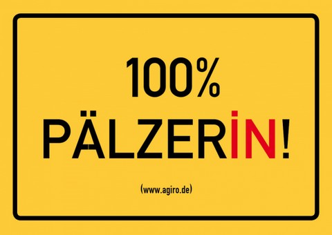 Mit dem Aufkleber 100% Pfälzer oder mit dem Bekenntniss schlecht hin - dem 100% Pfälzer Aufkleber zeigen Sie aus welch wunderbarem Fleckchen Erde Sie stammen!
