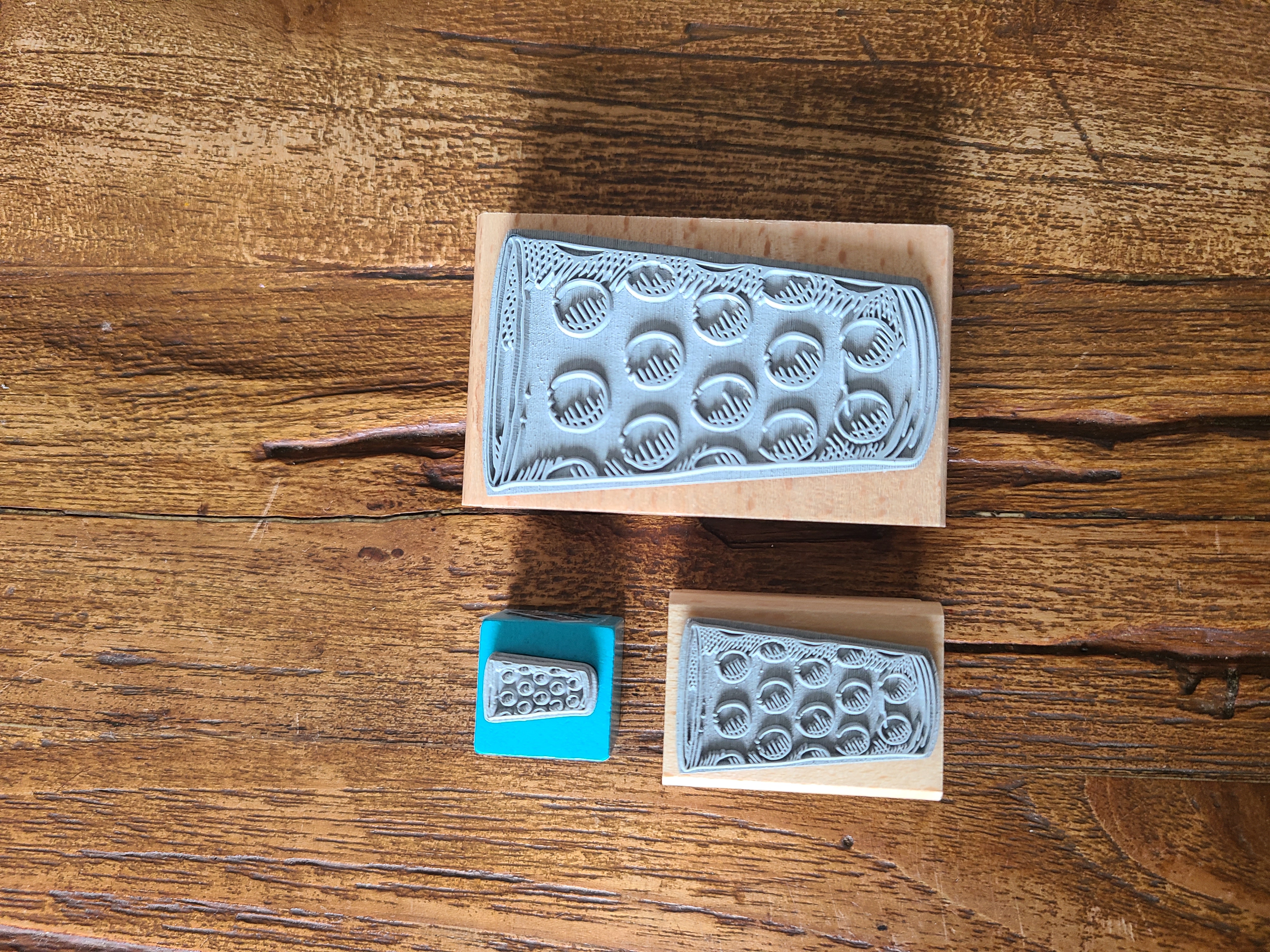 - Stempelgummi montiert auf Holz
