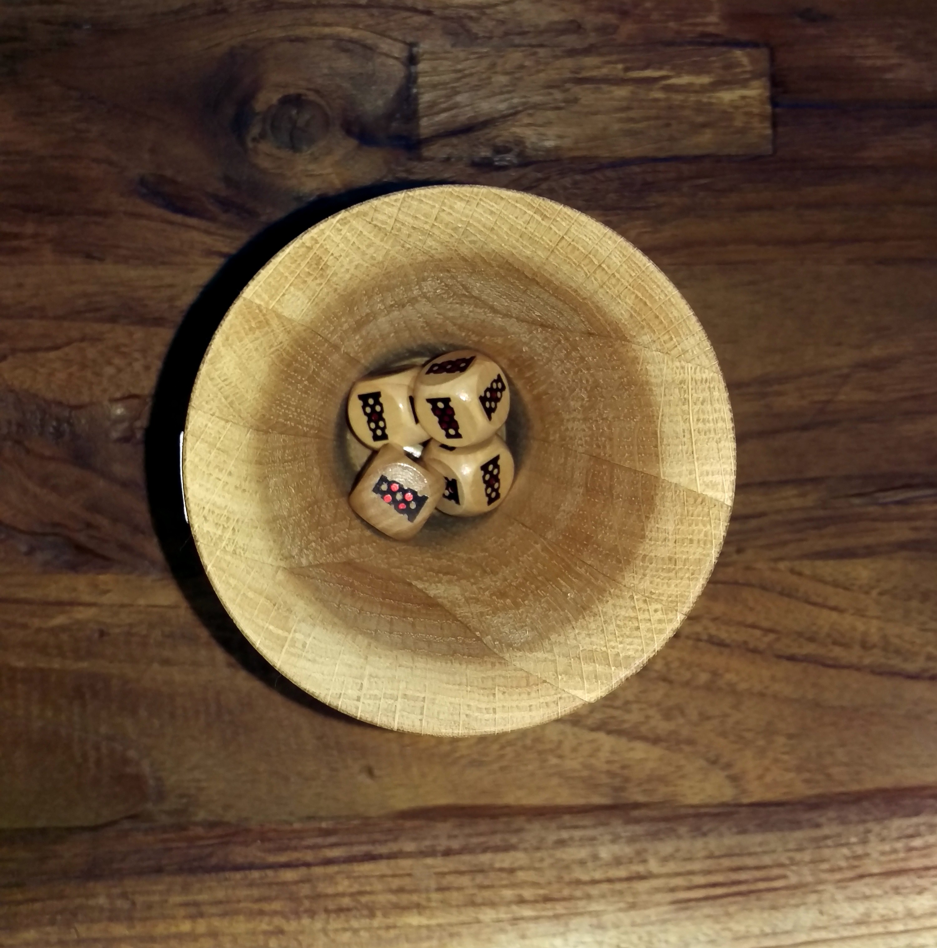 Der Dubblikat Würfeldubbe wird aus Eichenholz gefertigt. Um Rissbildungen zu vermeiden,