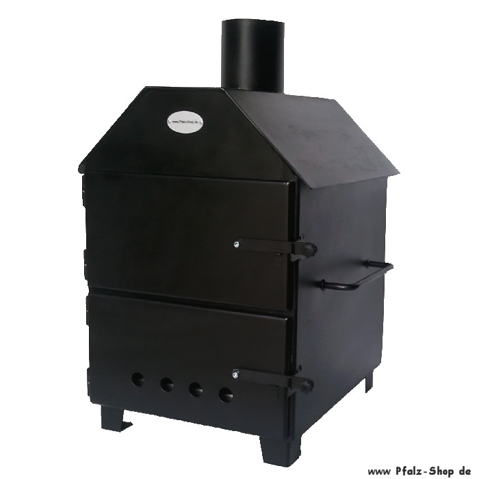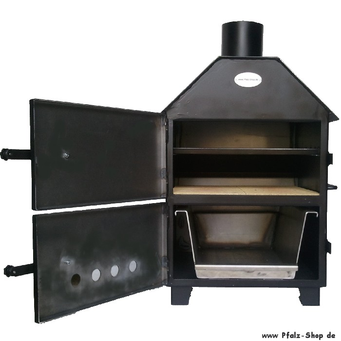 Also kein Wunder, dass diese Delikatesse den Weg in die Pfalz finden musste. Jetzt können Sie mit unserem Flammkuchenofen Ihren eigenen Flammkuchen zu Hause backen! Der Flammkuchenofen wird mit offenem Feuer beheizt. Am besten schmeckt es mit Rebknorzen. Alternativ können Sie auch harzfreies Holz (Eiche, Buche) oder Holzkohle verwenden. Er ist mit einem Backfach und einem Feuerraum ausgerüstet. Im unteren Feuerraum können Sie in der herausziehbaren Feuerschale das Feuer entfachen. Im oberen Backraum wird auf Schamottesteinen gebacken. Natürlich können Sie außer Flammkuchen auch Pizza darin zubereiten!