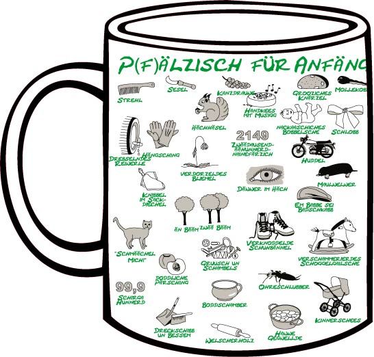 "Im Büro hoschd viel Spaß, hoschd a Pälzer Anfänger Tass"