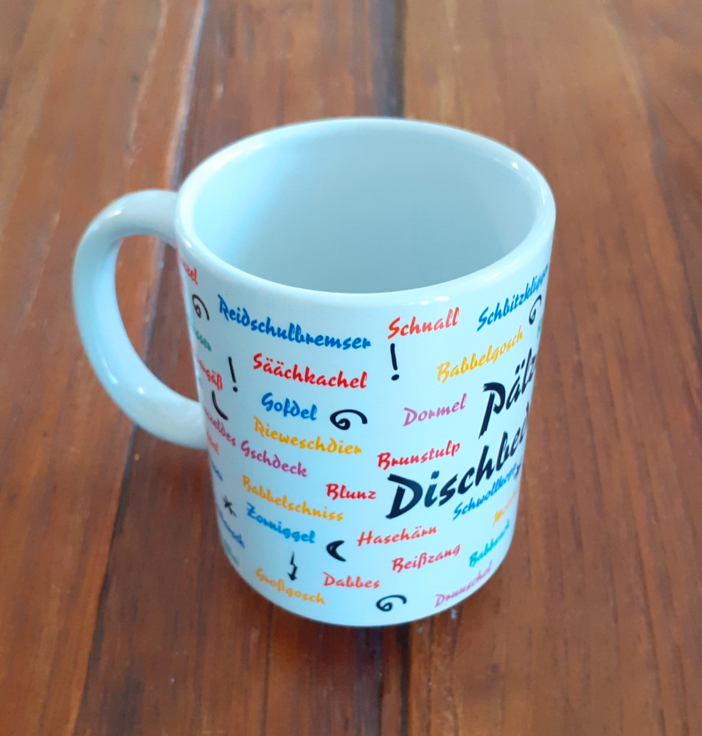 Der Hingucker im Büro! Mit der Tasse Pfälzer Dischbediertass werden Sie mit Sicherheit lustig darüber diskutieren,