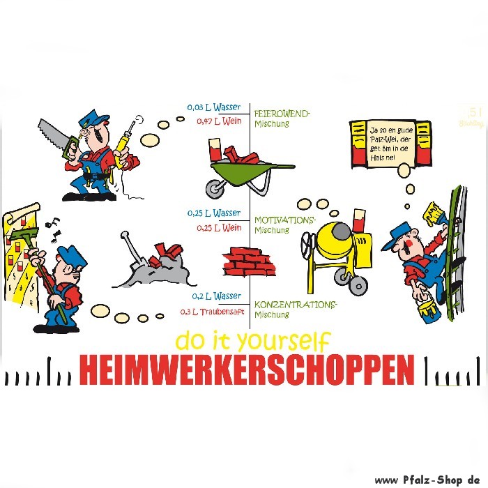 Der Hingucker auf jedem Weinfest! Mit dem Schobbeglas "Heimwerker" werden Sie mit Sicherheit tolle Bekanntschaften machen, da jeder wissen möchte, wo das Glas denn her ist.